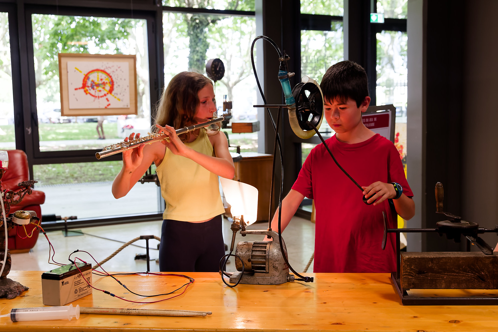 Les musiciens en herbe improvisent avec les machines. Ces expériences sont réunies dans une création musicale collective en fin de projet.