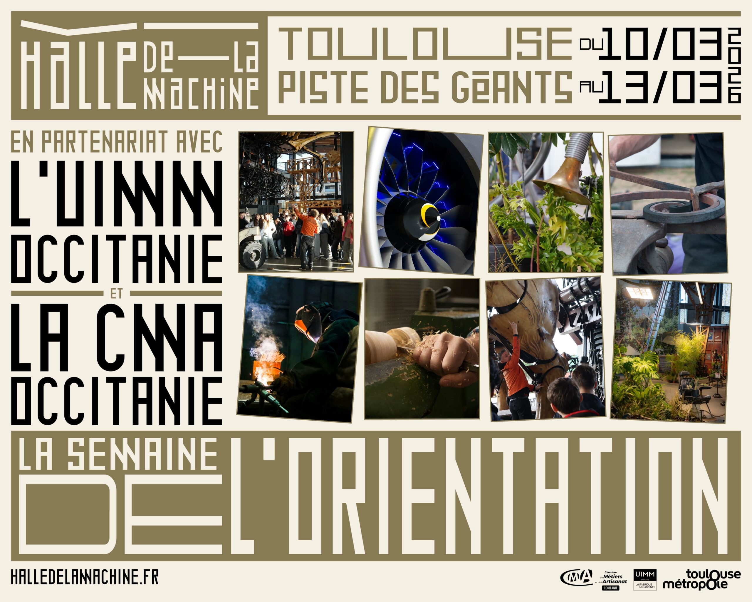 Partenaire de la Halle de La Machine, la Chambre de Métiers et de l’Artisanat d’Occitanie (CMA Occitanie) participe au Printemps de l’orientation, les jeudi 12 et vendredi 13 mars. CMA Formation, son centre de formation régional (plus de 9 300 apprentis à la rentrée 2025), propose pour l’occasion un dispositif immersif pour faire le lien entre l’univers spectaculaire des machines et la réalité des métiers de l’artisanat.